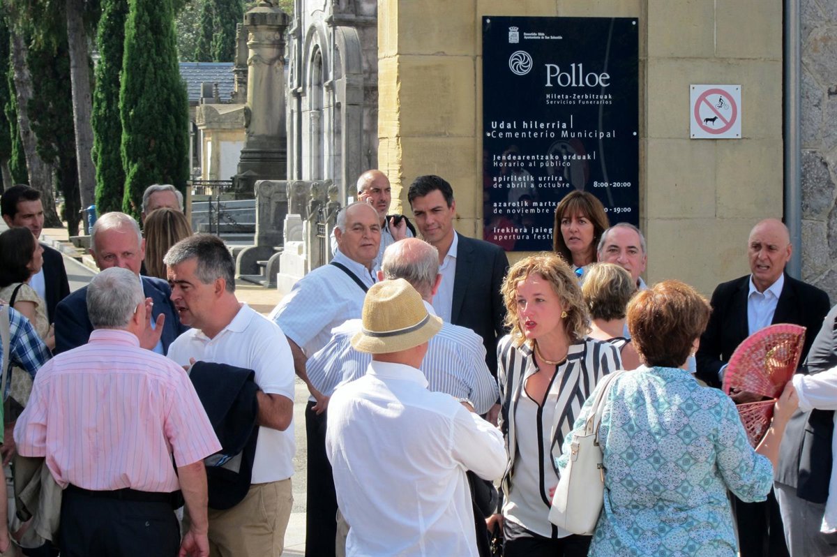 Los familiares y allegados de Txiki Benegas ofrecen el último adiós al dirigente socialista en el cementerio de Polloe, arropados por numerosos representantes del PSOE, entre ellos, su secretario general, Pedro Sánchez, y del PSE-EE como su líder, Idoia Mendia.