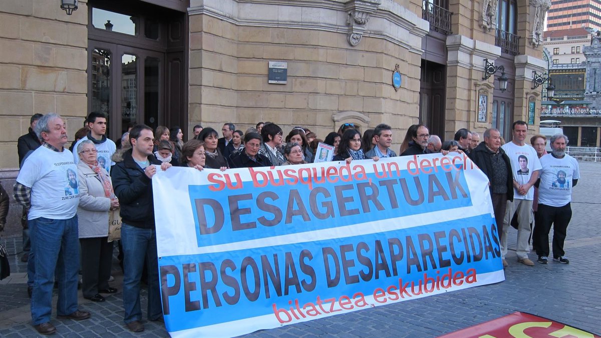 Más de un centenar de personas se han concentrado este lunes en la plaza Arriaga de Bilbao para recordar a las personas desaparecidas, coincidiendo con la celebración del 'Día de los desaparecidos sin causa aparente', y para reclamar unidades de investigación específicas para su localización.