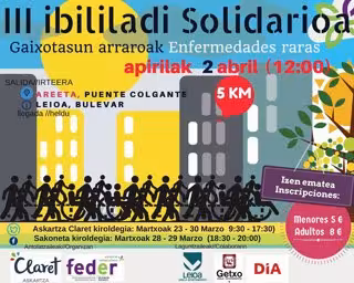 La Delegación de la Federación Española de Enfermedades Raras (FEDER) en País Vasco celebrará este domingo, 2 de abril, su 'III Ibilaldi Solidarioa', en colaboración con el Colegio Askartza Claret y con el objetivo de "hacer visibles" las enfermedades raras.