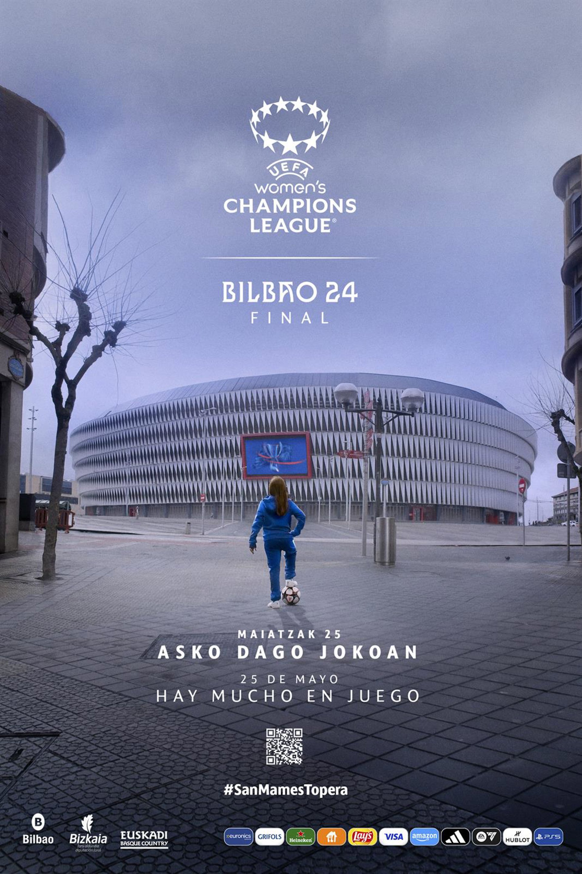 Según han recordado los organizadores, ese día, a partir de las 18.00 horas, el estadio San Mamés acogerá por primera vez una final de la UEFA Women's Champions League, el mayor evento deportivo de clubes de fútbol femenino de Europa.