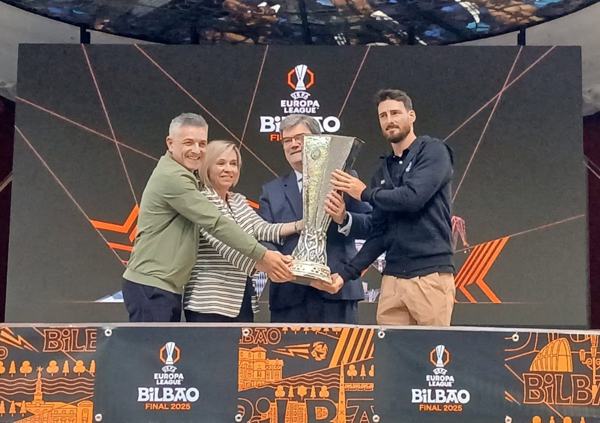 El alcalde de Bilbao, Juan Mari Aburto, la diputada de Promoción Económica de Bizkaia, Ainara Basurko, el director de Actividad Física y Deporte del Gobierno Vasco, Gorka Iturriaga, y el embajador de la UEFA para esta edición de la Europa League, el exfutbolista Aritz Aduriz, que ha portado el trofeo de la competición, han inaugurado en el Arenal bilbaíno el Fan Festival de la UEFA, una zona "neutral" de acceso gratuito con numerosas actividades para que visitantes y ciudadanía puedan disfrutar del ambiente que rodee a la final en sus horas previas.