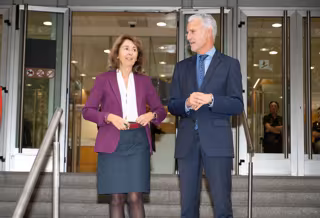 El presidente del Tribunal Superior de Justicia del País Vasco (TSJPV), Iñaki Subijana, y la fiscal superior del País Vasco, Carmen Adán, a su llegada a la apertura del Año Judicial 2024-2025, en el Palacio de Justicia de Bilbao - David de Haro - Europa Press