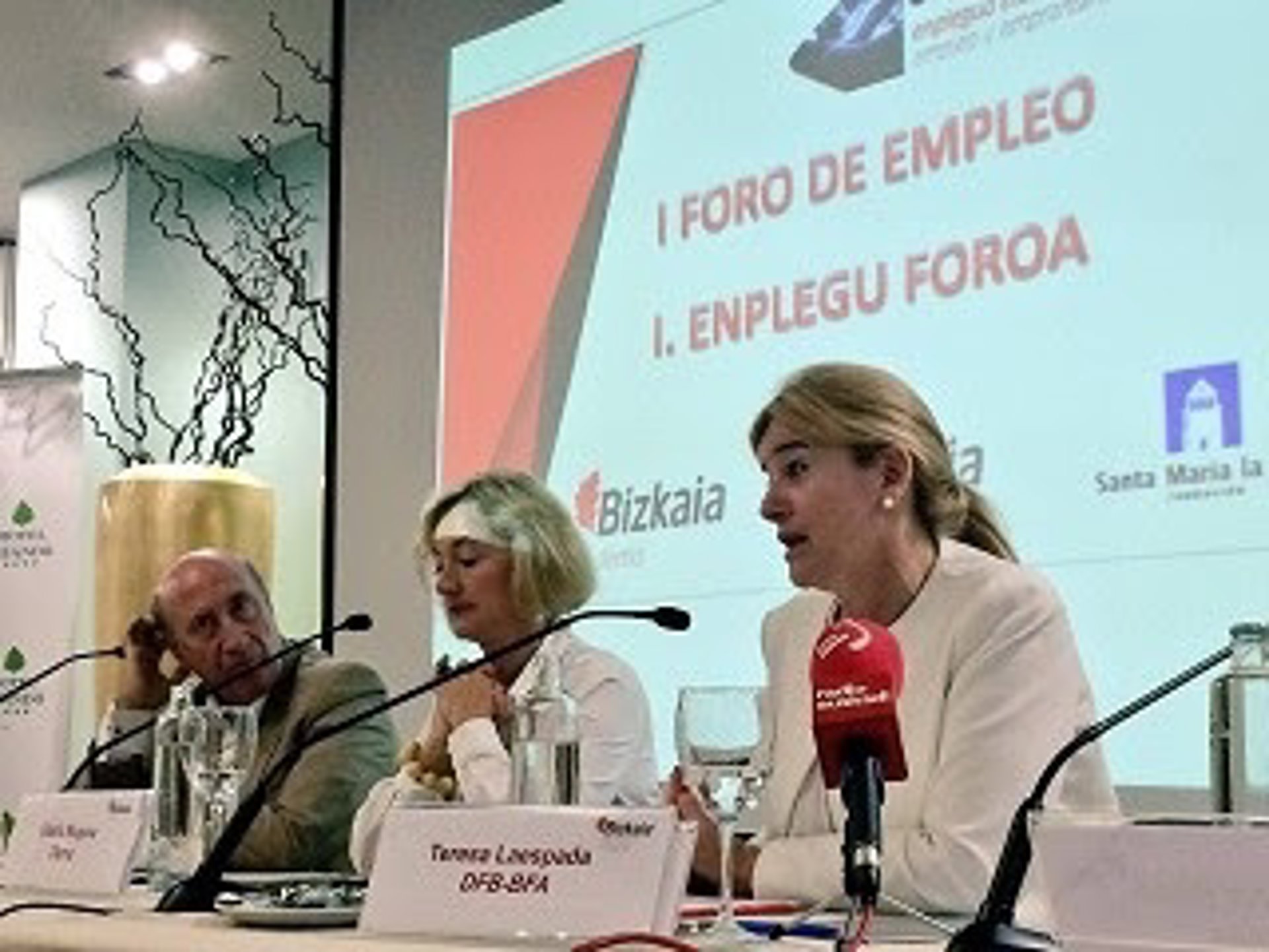 La diputada foral de Empleo, Inclusión Social e Igualdad de Bizkaia, Teresa Laespada, ha inaugurado este lunes en Bilbao el I Foro de Empleo Anezka-Lanzaderas de Empleo y Emprendimiento Solidario, impulsado por la Agencia de Desarrollo y Creación Empresarial DEMA, en colaboración con la Fundación Santa María La Real, en el que se han presentados las tres lanzaderas vizcaínas impulsadas por DEMA y la Institución foral.