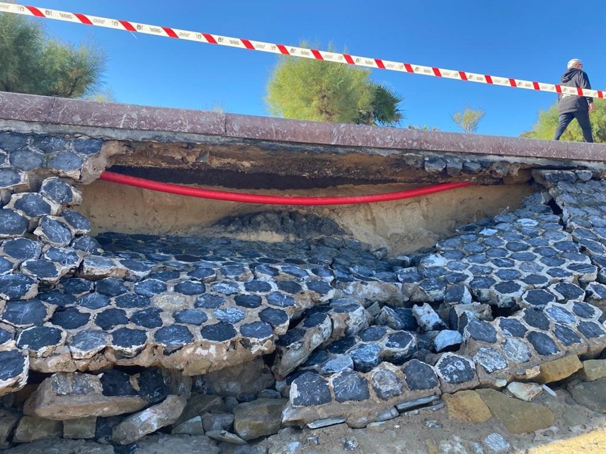 El oleaje ha causado la rotura del muro, que ya se ha comenzado a reparar mediante escollera de piedras el hueco y se protegerá también con escollera la zapata.