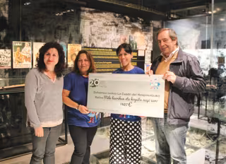 La Fundación Museo de la Paz de Gernika ha entregado un cheque de 1.427 euros a la Cuadri del Hospi, para contribuir a su campaña "Gu be zuek gara".