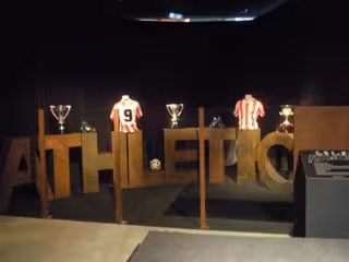 En concreto, la muestra cuenta con objetos cedidos por el Museo del Athletic y reúne, por ejemplo, las Copas de la Liga 82/83 y 83/84, así como la de la Copa del 84 y la Supercopa del mismo año. Además, alberga camisetas de los jugadores que jugaron dichas finales, las botas de Manolo Sarabia y Argote, o el balón con el que consiguió el 8º título de Liga.