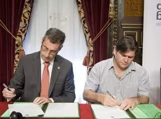 El diputado general de Gipuzkoa, Markel Olano, y el director de la asociación escocesa Assist Social Capital, Colin Campbell, han suscrito hoy en San Sebastián un convenio de colaboración con vistas a fortalecer el capital social del territorio histórico.