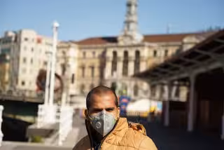 Un hombre pasea protegido con mascarilla por Bilbao tras el anterior anuncio de Estado de Alarma en España por el avance de coronavirus - H.Bilbao - Europa Press - Archivo