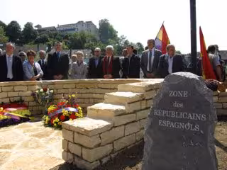 Acto seguido, se ha procedido a la inauguración de un monumento erigido en memoria de los republicanos españoles, obra de Nekane Daguerre inspirada en las fortificaciones defensivas republicanas.