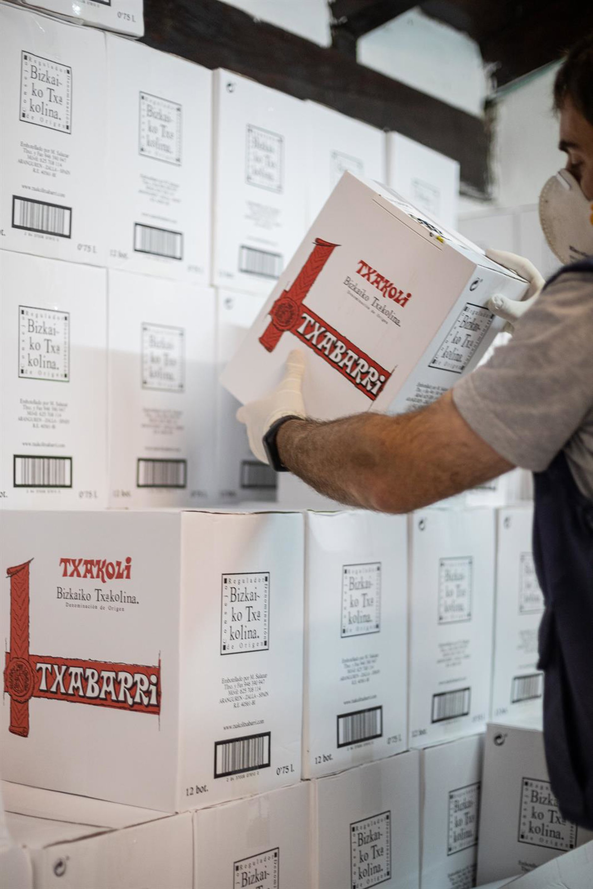 Archivo - Un trabajador de la empresa Txakoli Txabarri denominación de origen 'Vinos de Euskadi' coloca una caja de vino de su bogeda.En Zalla, Vizcaya, País Vasco, (España), a 16 de mayo de 2020. - Iñaki Berasaluce - Europa Press - Archivo