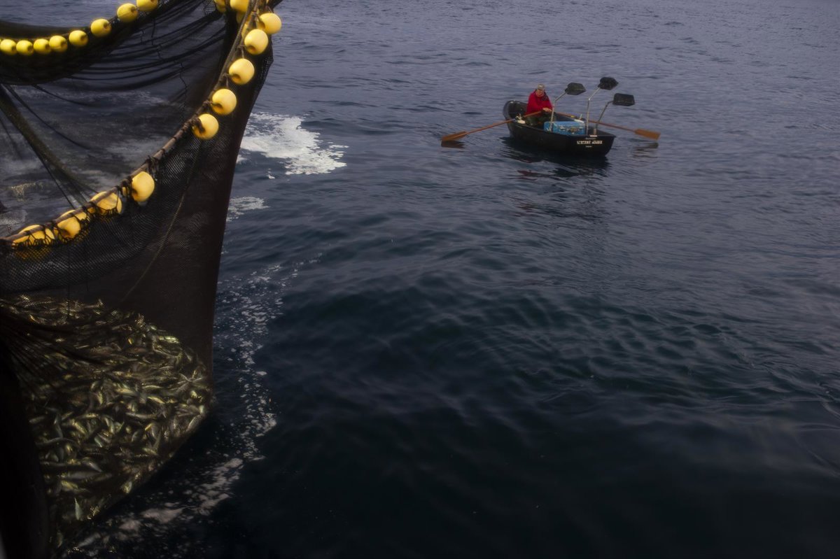 Archivo - La chalupa apoya a la pesca de la anchoa en el amanecer junto a la captura con la red llena de peces . - H.Bilbao - Europa Press - Archivo