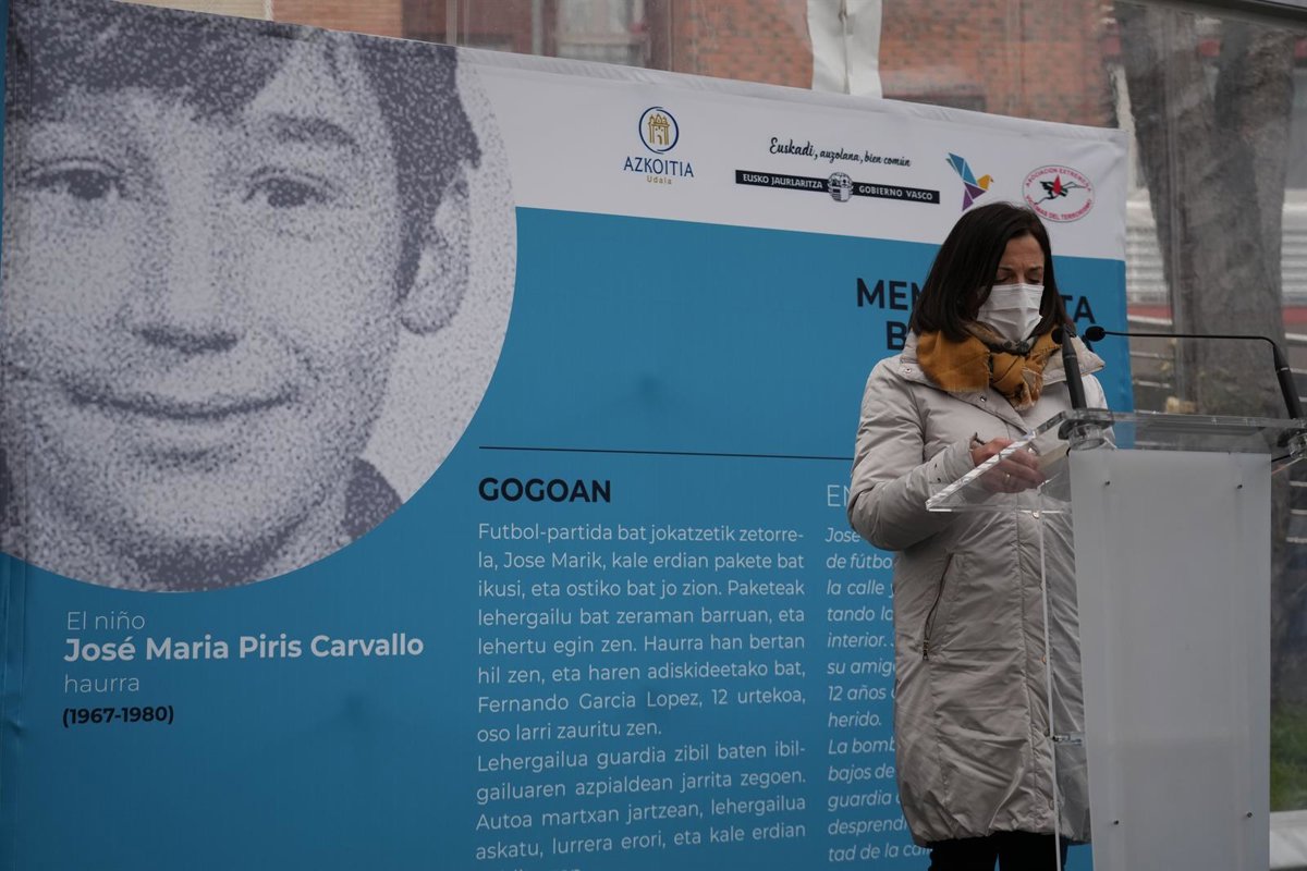 El Gobierno Vasco ha rendido homenaje este sábado en la localidad guipuzcoana de Azkoitia al niño José María Piris Carballo, muerto con 13 años tras dar una patada a un paquete-bomba que estaba en la calle el 29 de marzo de 1980.