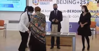 Las mujeres homenajeadas han explicado a través de un vídeo lo que supuso su viaje a Beijing y cómo influyó lo allí recogido en la sociedad vasca. Asimismo, han recibido una placa de recuerdo por parte del Gobierno Vasco a modo de agradecimiento por su aportación a la construcción de una sociedad más igualitaria.