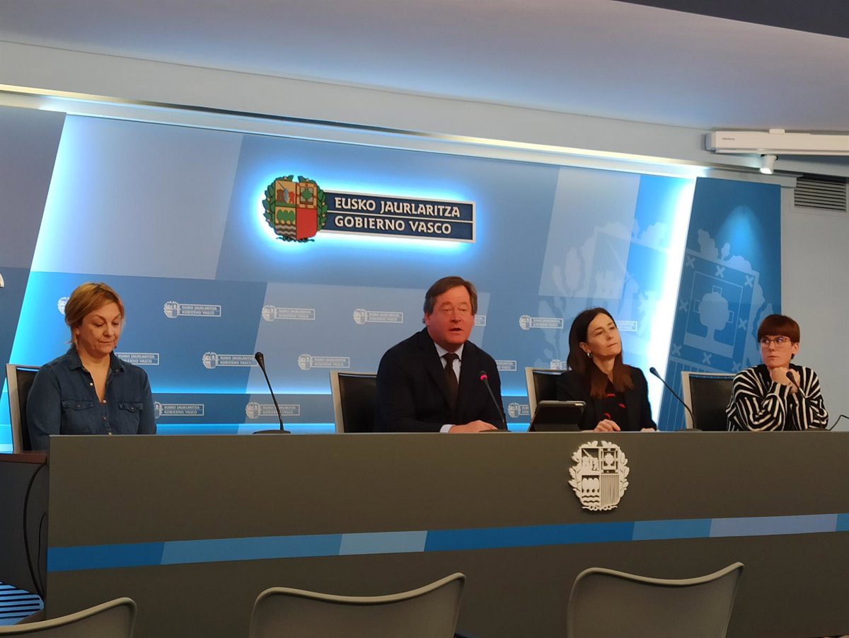 En rueda de prensa en San Sebastián, el consejero vasco de Cultura y Política Lingüística, Bingen Zupiria, acompañado de la viceconsejera de Política Lingüística, Miren Dobaran, y de las investigadoras Onintza Legorburu y Nekane Goikoetxea han dado cuenta de la primera edición de este programa.