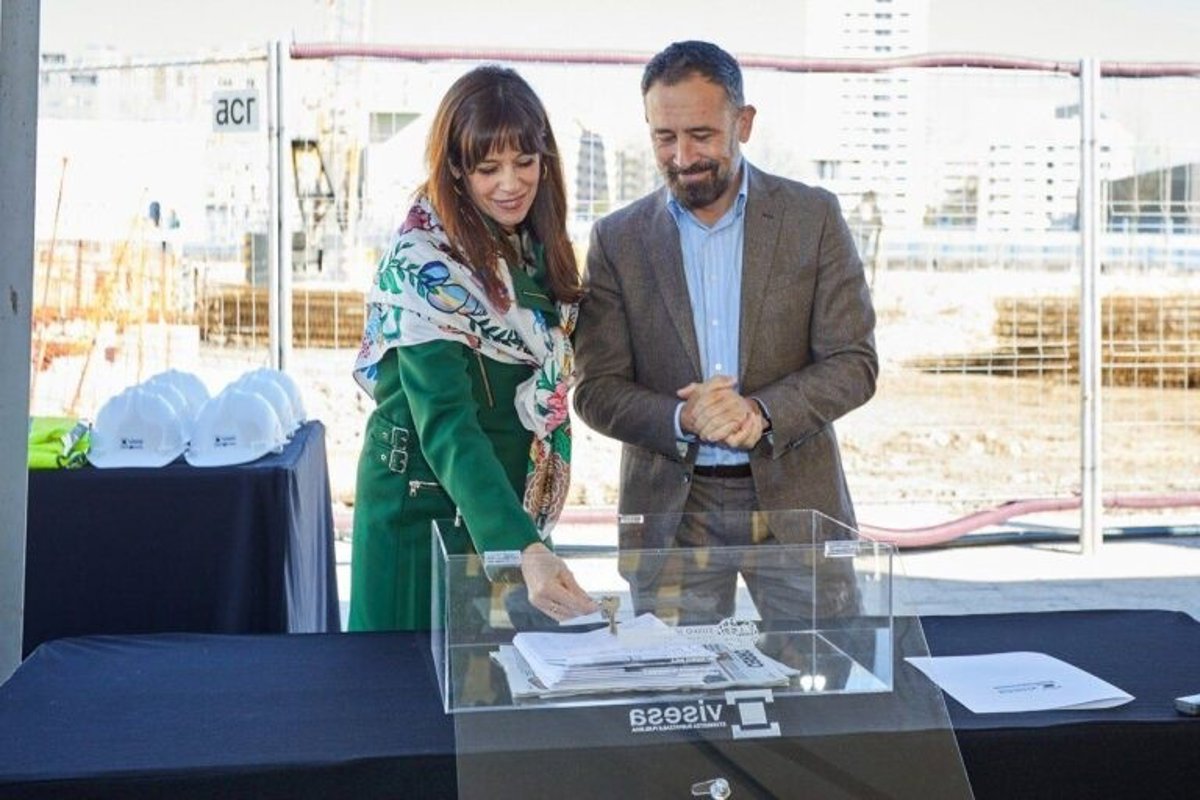 El acto ha incluido también la explicación técnica de la promoción por parte de Visesa y el posterior acto simbólico de colocación de la primera piedra. La alcaldesa ha introducido en una urna un ejemplar del periódico del día, el consejero ha incorporado el acta de replanteo firmada junto a los planos del proyecto y, finalmente, se han depositado unas llaves simbólicas en representación de las futuras personas adjudicatarias, antes de proceder al depósito de la urna.
