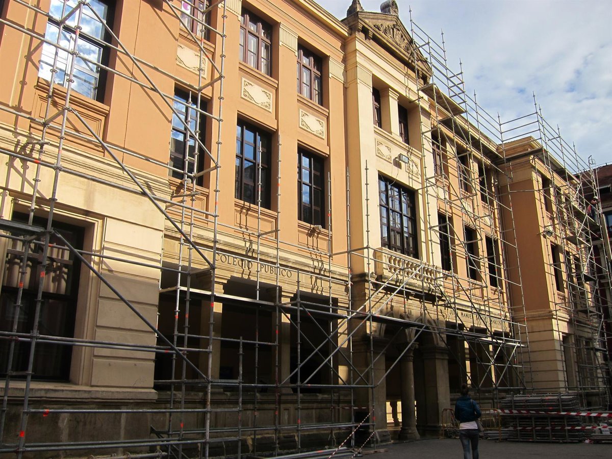 Según han informado a Europa Press fuentes del AMPA, esta semana se ha procedido a colocar los andamios que cubren toda la fachada de las conocidas como Escuelas de Kontxa. La instalación del andamiaje proseguirá la próxima semana, coincidiendo con la finalización del curso escolar.