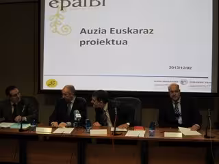 El portavoz del Gobierno vasco y consejero de Administración Pública y Justicia, Josu Erkoreka, el presidente del Tribunal Superior de Justicia del País Vasco, Juan Luis Ibarra, y el Fiscal General de País Vasco, Juan Calparsoro, han presentado esta tarde, en el marco del Día Internacional del Euskera, ante la comunidad jurídica (judicatura, fiscalía, abogacía, procuraduría), el programa "Auzia Euskaraz", que tiene como objetivo el impulso de la normalización lingüística en el ámbito de la Justicia.