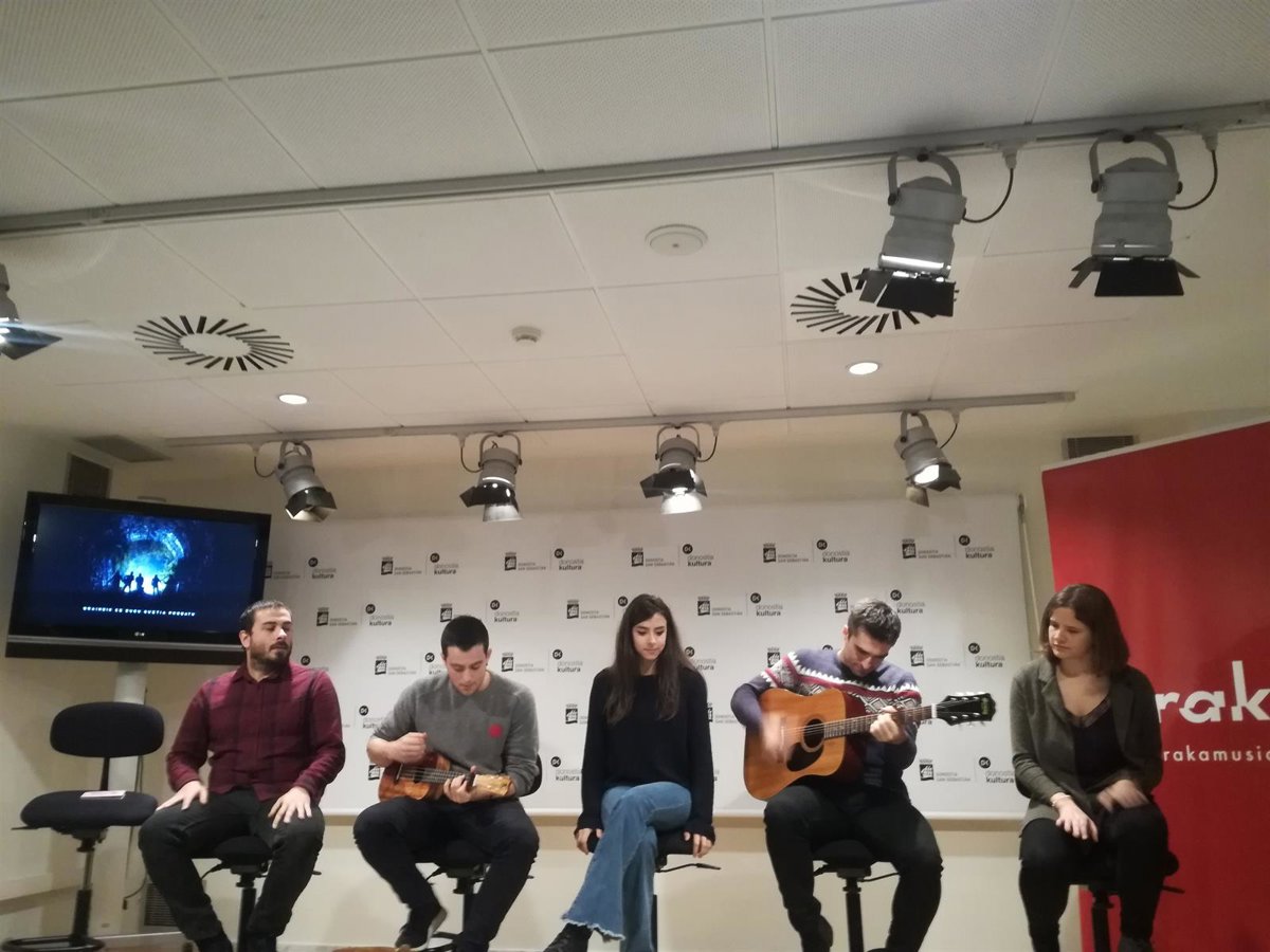 En rueda de prensa en la capital guipuzcoana, el grupo ha presentado este primer disco que incluye nueve temas y que ya está disponible en plataformas digitales y llegará en diciembre a la feria de Durango (Bizkaia), junto al responsable de la discográfica Airaka, Koldo Rodríguez, y el director de programación de música de Donostia Kultura, Miguel Martín.