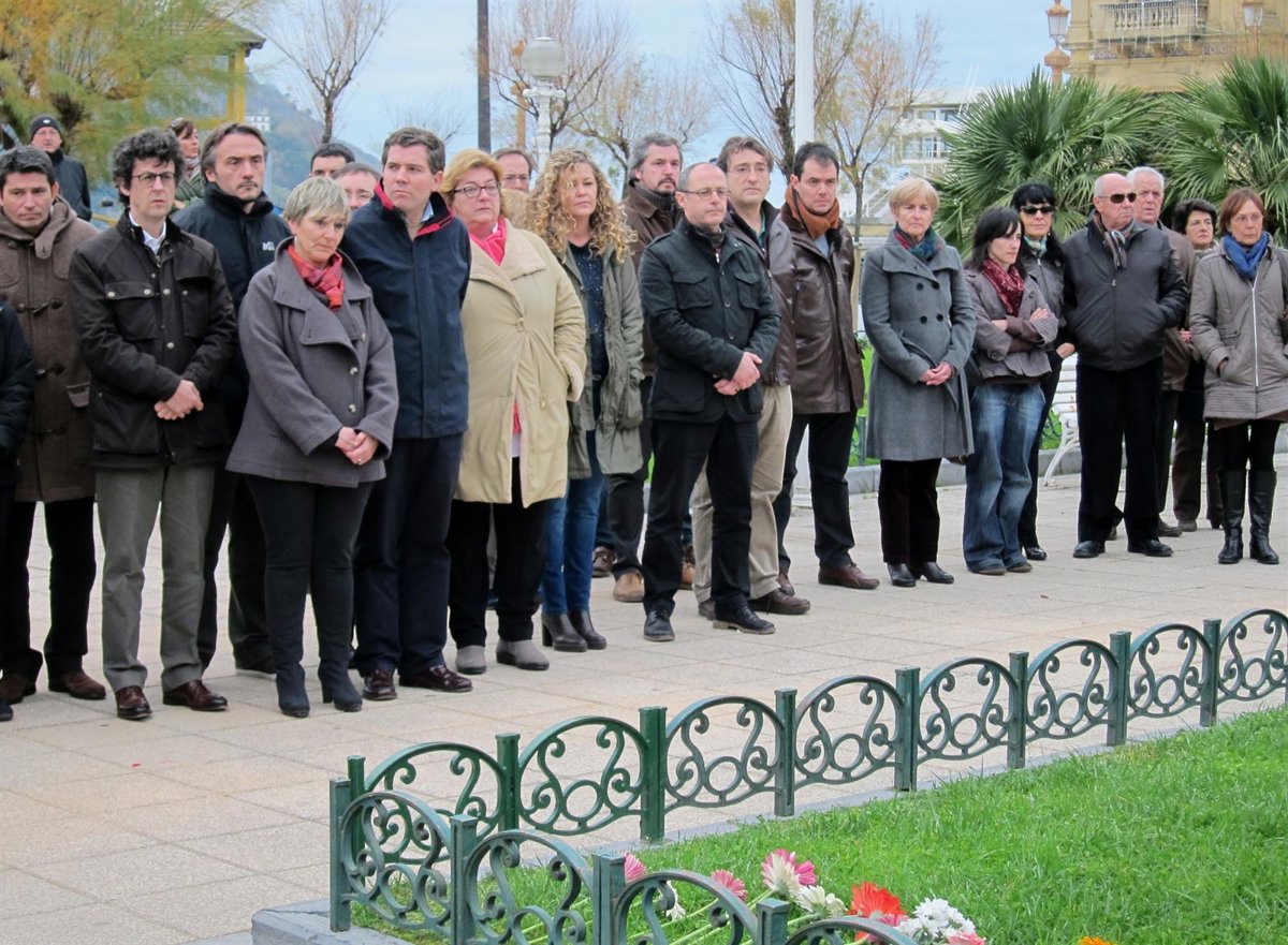 Los concejales de todas las formaciones representadas en el Consistorio donostiarra han tomado parte en el homenaje, celebrado en el monolito 'Oroimena' a las víctimas, ubicado en Alderdi Eder, que ha consistido en unos minutos de silencio y en una ofrenda floral, que ha comenzado el propio alcalde, Juan Karlos Izagirre.