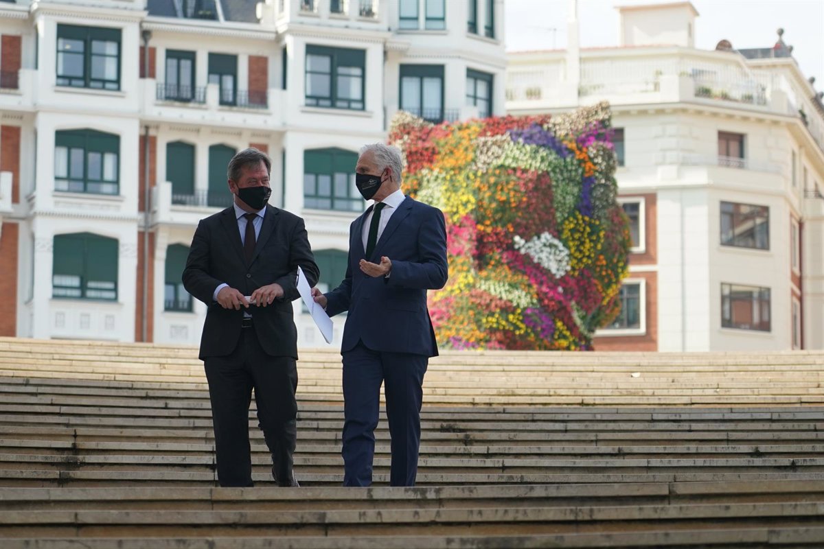 (I-D) El Consejero de Cultura del Gobierno Vasco, Bingen Zupiria; y el Director General del Museo Guggenheim Bilbao, Juan Ignacio Vidarte, el día en el que el Museo Guggenheim Bilbao reabre sus instalaciones - H.Bilbao - Europa Press