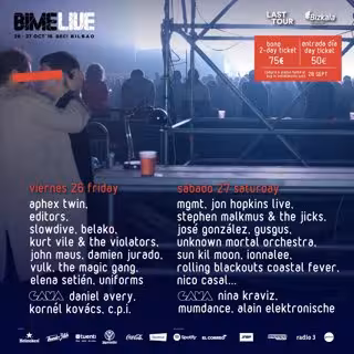 GusGus, Nico Casal y Uniforms se suman al cartel de BIME Live, el festival del otoño que se celebrará los días 26 y 27 de octubre en el BEC! de Barakaldo (Bizkaia), que ya tiene confirmadas las actuaciones como cabezas de cartel de Aphex Twin, MGMT, Editors, y Nina Kraviz.