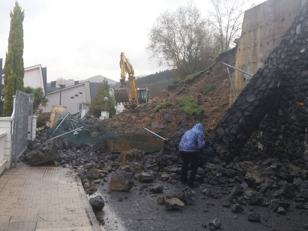 Una mujer ha resultado herida leve por un corrimiento de tierras en Llodio (Álava) que ha provocado la caída de un muro, lo que ha afectado a varias viviendas de la Urbanización Isasi y a varios coches que se encontraban aparcados en la zona.