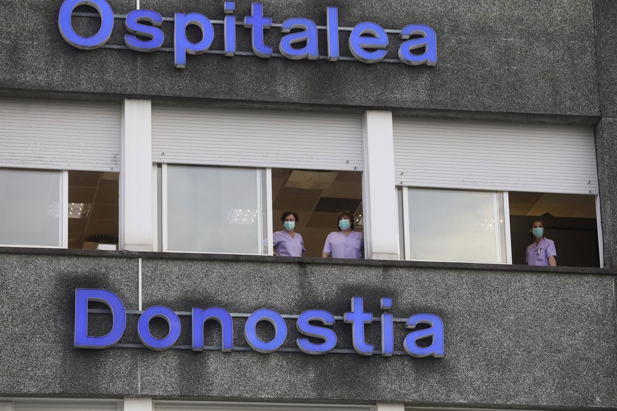 Archivo - Varias sanitarias se asoman a las ventanas del Hospital Donostia - Javi Colmenero - Europa Press - Archivo