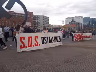 En el caso de Bilbao, y tras la multitudinaria marcha del pasado día 7, este mediodía decenas de profesionales del sector se han vuelto a movilizar frente al Consistorio de la Villa entre gritos de 'ostalaritza aurrera' y sonido de sirenas.