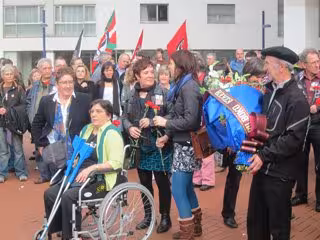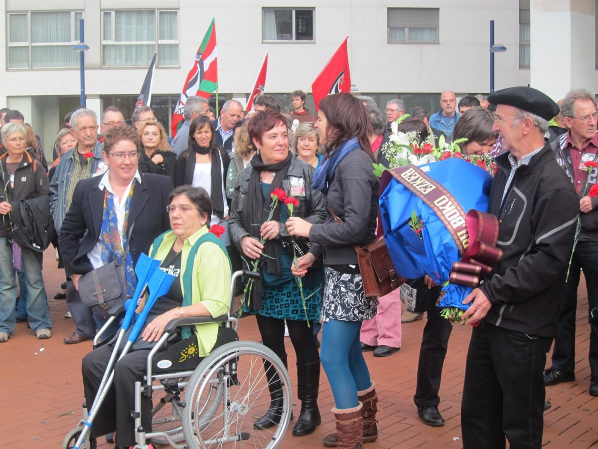 En la ofrenda floral realizada en el monolito de Josu Muguruza, en la Plaza de Rekalde, han participado la viuda del que fuera diputado abertzale, Elena Bartolomé, y su hija, Ane Muguruza, además de destacados miembros de la IA como Rufi Etxeberria y Karmelo Landa.