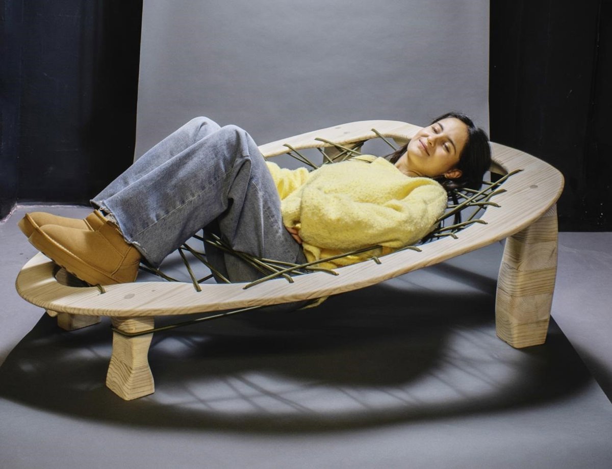 Entre ellas destaca "La cama globo", que nace del deseo de "una cama que diera sensación de rebote, como si estuviera flotando y saltando al mismo tiempo". La pieza interpreta la idea de flotabilidad y ligereza a través de una estructura de madera y una superficie elástica que permite al usuario sentir la sensación de suspensión en el aire.
