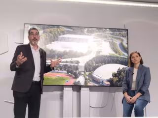 En rueda de prensa en San Sebastián, el alcalde donostiarra, Eneko Goia, acompañado de la edil de Economía, Ane Oyarbide, han presentado el anteproyecto del nuevo Illunbe y su entorno, una actuación que es "una de las prioridades" de la presente legislatura y que se enmarca en la remodelación de toda la zona deportiva de Anoeta.