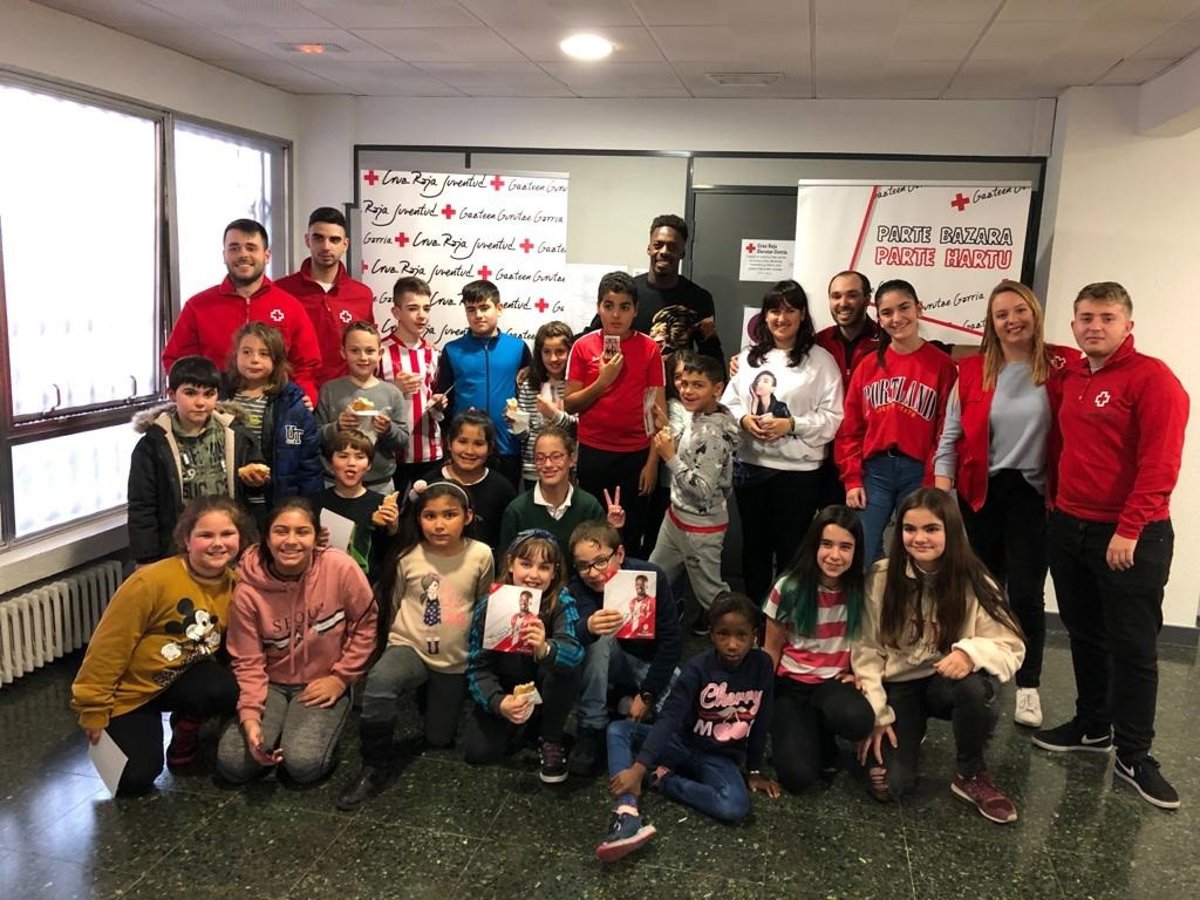 El jugador del Athletic Club de Bilbao Iñaki Williams ha acudido esta tarde a las instalaciones de Cruz Roja Bizkaia para apoyar de primera mano los proyectos sociales de la entidad vinculados a la educación. Es la segunda vez que el deportista visita las instalaciones de la organización, ya que el año pasado también participó en un encuentro similar.
