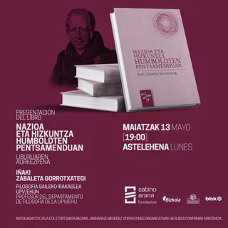 La Fundación Sabino Arana acogerá este lunes, en su sede en Bilbao, la presentación del libro del profesor de la Universidad del País Vasco (UPV/EHU) Iñaki Zabaleta 'Nazioa eta hizkuntza Humboldten pentsamenduan', en el que analiza el lugar que ocupan la nación y la lengua en el pensamiento del humanista, político y lingüista prusiano Wilhelm von Humboldt.