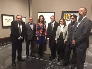 La diputada foral vizcaína de Euskera y Cultura, Lorea Bilbao, ha presidido esta tarde la inauguración de la exposición 'La cultura del vino. Maestros del grabado de la Colección Vivanco' junto a la consejera de Educación, Cristina Uriarte; Javier Viar, director del Museo de Bellas Artes de Bilbao; Santiago Vivanco, director general de la Fundación y Experiencias Vivanco; Eduardo Díez, director de Enoturismo y del Museo Vivanco de la Cultura del Vino; Iñaki Alonso, co-presidente de FIG Bilbao y Roberto Sáenz de Gorbea, director Feria FIG Bilbao.