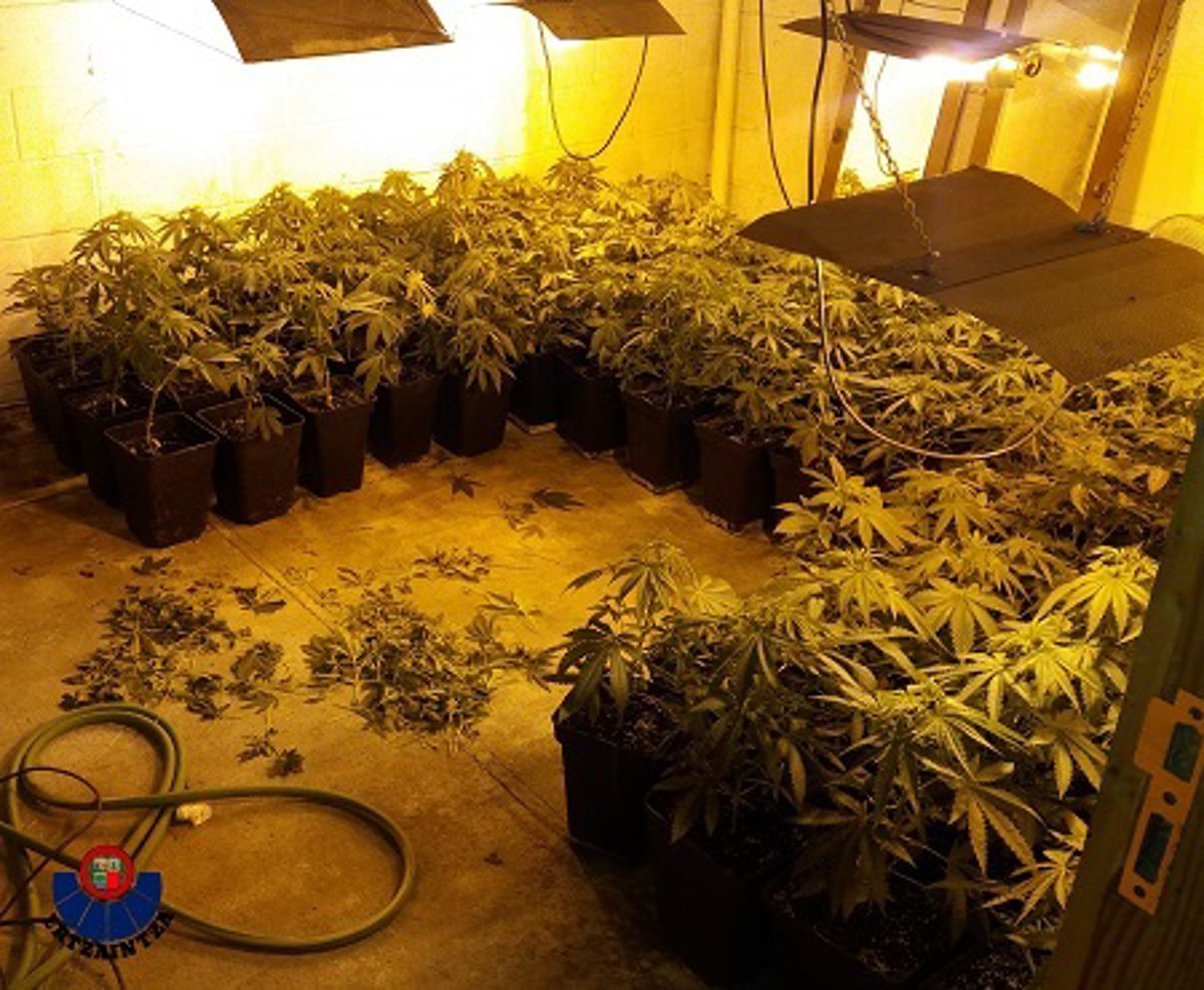 En la inspección efectuada se hallaron un millar de plantas de marihuana en distintas fases de desarrollo, además de la infraestructura precisa para la producción de dichas plantas de cannabis; elementos como utillaje agrícola, sistemas de iluminación y extracción de aire, además de dispositivos de riego y deshumidificadores, todo ello dispuesto para acelerar y favorecer la evolución y crecimiento de dichas plantas. También se incautaban de una importante cantidad de cogollos de misma naturaleza psicotrópica, hallados en un habitáculo propio para secado de dicha sustancia vegetal.
