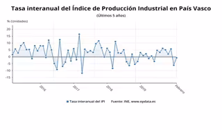 La tasa anual de la producción industrial ha aumentado en febrero respecto a febrero de 2019 en nueve comunidades y disminuye en las otras ocho, entre ellas en Euskadi, un 0,7%.
