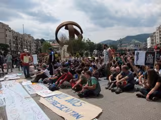 Los 'indignados' protestan frente al Ayuntamiento de Bilbao y no descartan seguir adelante con la acampada