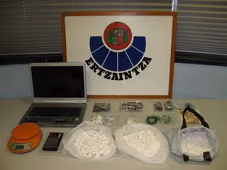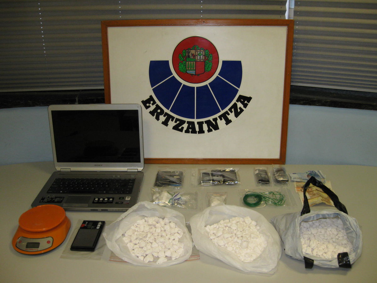 En el posterior registro del domicilio del arrestado, afincado en Eibar, los agentes localizaron un kilo y medio de cocaína "en roca", junto a dos balanzas de precisión, además de sustancias de corte y material para su posterior dosificación y venta.