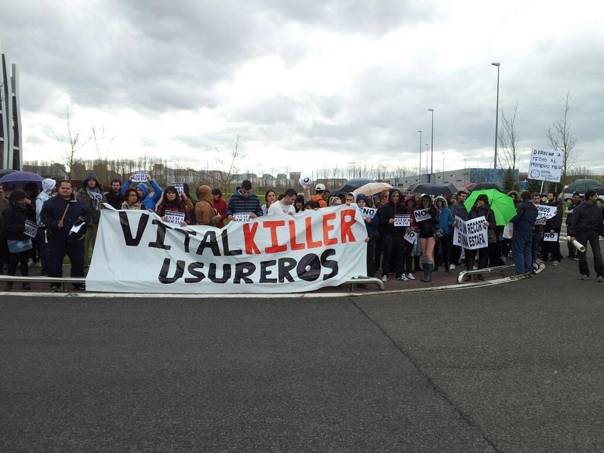 Inquilinos del programa 'Vitalquiler', el programa de subvenciones para alquileres de la Obra Social de Caja Vital, se han concentrado este jueves frente a la sede central de la caja alavesa, en Vitoria, para reclamar que se mantengan estas ayudas.