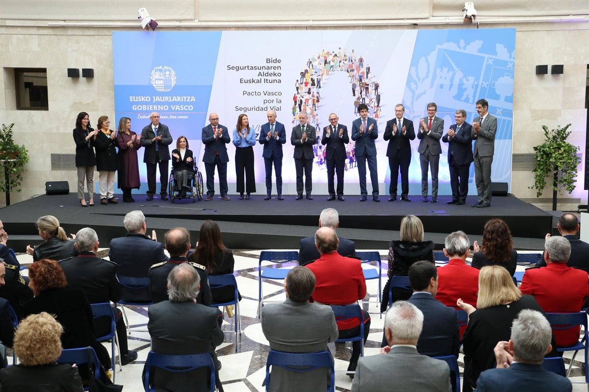 En su intervención, el lehendakari ha destacado que el Pacto representa "un compromiso tan ambicioso como necesario" y es fruto del "trabajo compartido" por el Gobierno Vasco, las diputaciones forales, los ayuntamientos y Eudel, junto a la Fiscalía de Seguridad Vial y los agentes del tercer sector.