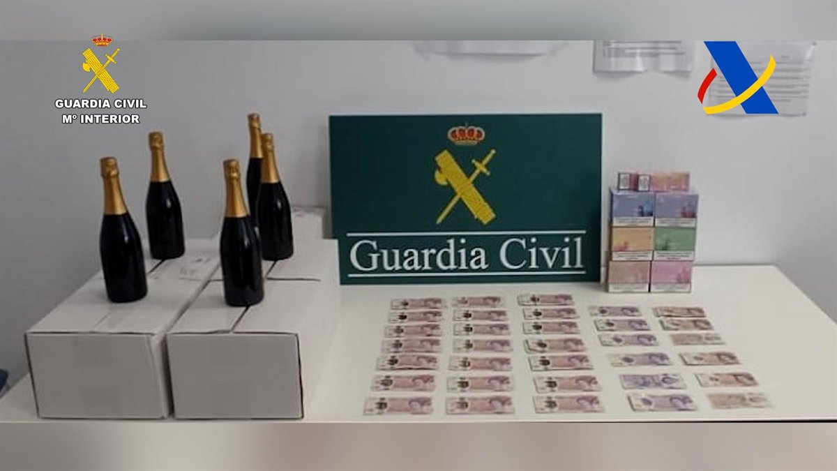 En el marco de las actuaciones realizadas, los investigadores fiscalizaron un vehículo con matrícula ucraniana, en el que localizaron una maleta con más de 67.000 dólares americanos, 10.000 francos suizos, más de 12.000 euros y 13.500 libras esterlinas, con un montante cercano a los 100.000 euros al cambio.