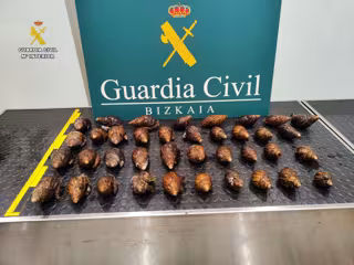 Agentes de la Guardia Civil de la Sección Fiscal y de Fronteras del aeropuerto de Bilbao, intervinieron el pasado 9 de marzo 38 caracoles gigantes africanos vivos, una especie invasora altamente peligrosa, en el equipaje facturado de una pasajera procedente de Nigeria, vía París, según ha informado la Subdelegación del Gobierno en Bizkaia.