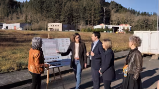 Elixabete Etxanobe, Ainara Basurko e Imanol Pradales presentan el proyecto del nuevo elkartegi de Ispaster. - DFB