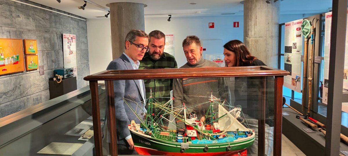 La muestra ha sido presentada este miércoles por la presidenta de Itsasmuseum Bilbao y diputada de Euskera, Cultura y Deporte de la Diputación Foral de Bizkaia, Leixuri Arrizabalaga, el comisario de la exposición e investigador y divulgador de la cultura marítima vasca Juan Antonio Apraiz, y Jon Ispizua, responsable de Erain, el proyecto de carpintería de ribera Itsasmuseum Bilbao, junto al director del museo, Jon Ruigómez.