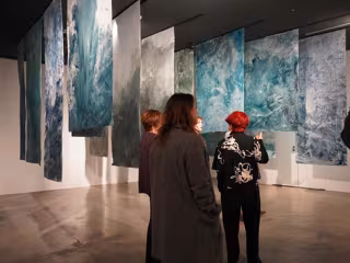 La muestra está compuesta por una instalación de papeles de distinto tipo pintados y suspendidos del techo. "Si nos ponemos delante del mar, vemos de inmediato que se mueve y suena. Intento representar un pequeño océano con una instalación que invita al espectador a penetrar en él, suavemente, con respeto, delicadeza, atención, a moverse a su ritmo y hacer que suene, que anima a tomar parte", ha indicado.