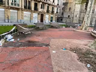 Desde primera hora de la mañana, un importante dispositivo de limpieza se encargaba de eliminar los restos de la fiesta en Albia y alrededor de las nueve y media de la mañana todavía continuaban con estas labores.