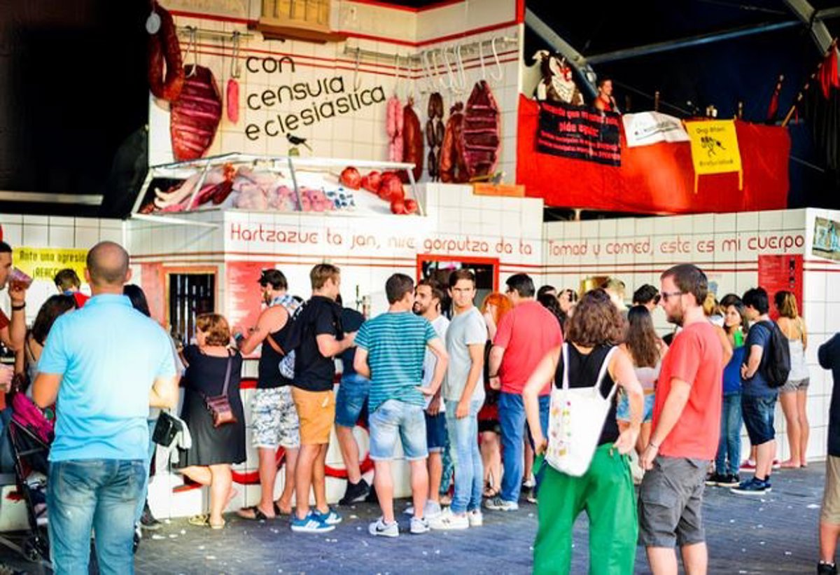 Un juzgado de Bilbao verá el próximo 18 de diciembre la causa por la colocación, durante la Aste Nagusia de 2017 en la txosna de la comparsa Hontzak, de la composición 'Carnicería vaticana', que simulaba el despiece por trozos de carne de un Jesús en la cruz, bajo la cúpula del Vaticano, con el lema 'Tomad y comed, este es mi cuerpo'. Las imágenes, que dieron origen a una denuncia del Obispado de la capital vizcaína, fue retirada por la Ertzaintza tras una orden judicial.
