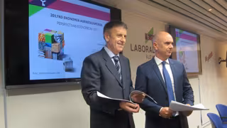 El director de Desarrollo de Negocio de Laboral Kutxa, Xabier Eguibar, y el director del Departamento de Estudios de la entidad, Joseba Madariaga, han presentado este miércoles el informe sobre 'Perspectivas Económicas para 2017' en una rueda de prensa en Bilbao, en la que han destacado que el año que termina ha sido un ejercicio "positivo" y han augurado que para el próximo año "el riesgo" vendrá "más por el exterior" que por "las variables propias de nuestra economía".