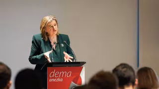 La diputada de Empleo, Cohesión Social e Igualdad de Bizkaia, Teresa Laespada, en un encuentro de las lanzaderas de empleo de Bizkaia. - DIPUTACIÓN DE BIZKAIA