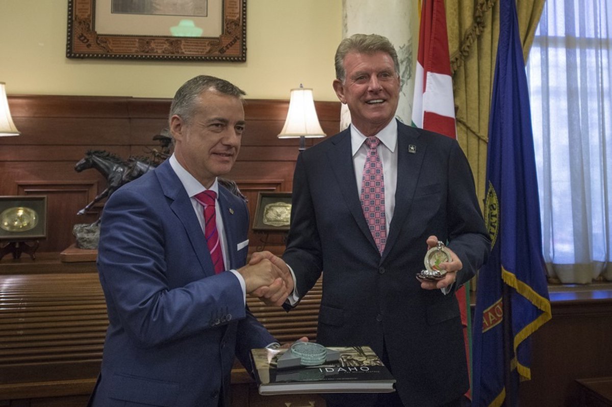El lehendakari, Iñigo Urkullu, en su primer día de viaje oficial a Boise, ha mantenido un encuentro con el gobernador del Estado de Idaho, C.L. "Butch" Otter, cita que ha servido para poner sobre la mesa ámbitos de colaboración entre Idaho y Euskadi como son el económico y empresarial por un lado, y el cultural por otro.